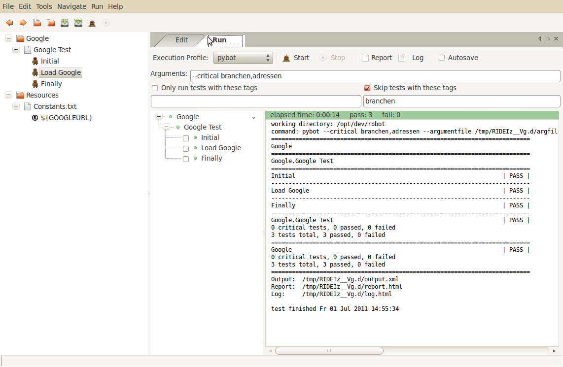 Robot is a nice and easy to use tool – we’re not using it to integrate into CI. We’re just running stand-alone tests. But it’s really handy when it comes to handle a huge number of test cases: For example we were testing the behaviour of search functionality of one of our websites. With robot I was able to fire hundreds of request against the search and get screenshots in return for further manual investigation. Also we’re using it to autmatically test dependencies of our content trees in huge navigational structures. For this kind of test Robot is perfectly suited.