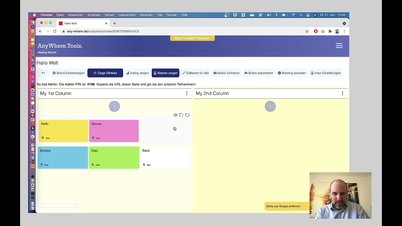 Erstelle dir ein Board für dein Meeting in weniger als 1 Minute. Keine Registrierung erforderlich: erstelle ein Board, teile die URL und schon geht es los.